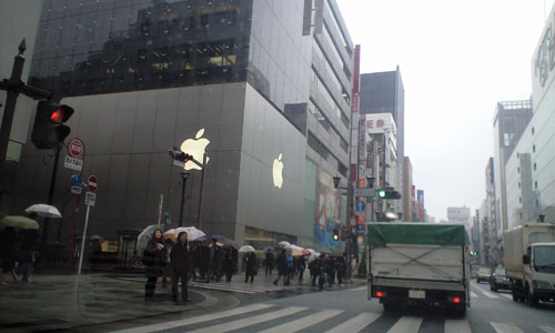最後に、どうでもイイのですが、「アップルストア銀座」前を通過したので、その時の画像を載せておきます。