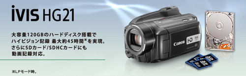 もう1コ上の HDD 内蔵モデル「iVIS HG21」は、「9万円前後」。