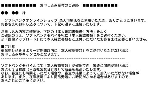 以下、ソフトバンクオンラインショップからのメール画像は、修正を加えているので、実際のメールとは異なるので、ご注意下さい。