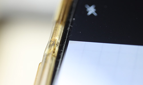 今回は、「液晶保護ガラス」の「縁(ふち)」ではなく、「前面」に「何か」が、ヒットした模様です。