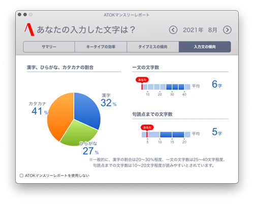 「ATOK マンスリーレポート」の「2021年8月分」でございます。