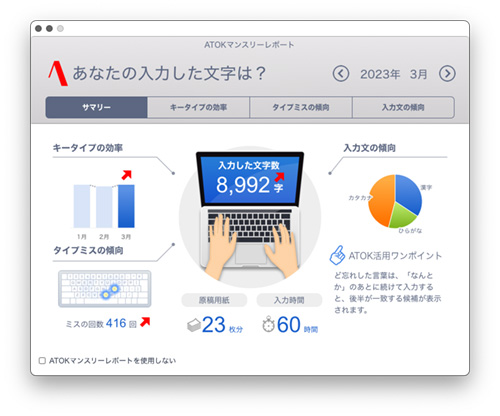 「ATOK マンスリーレポート」の「2023年03月分」でございます。