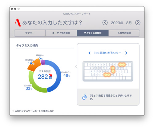 「ATOK マンスリーレポート」の「2023年08月分」でございます。