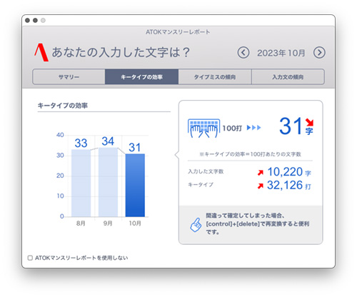 「ATOK マンスリーレポート」の「2023年10月分」でございます。