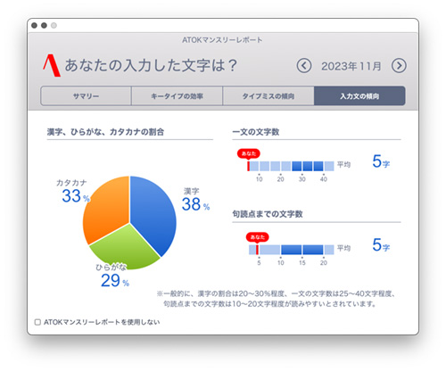 「ATOK マンスリーレポート」の「2023年11月分」でございます。