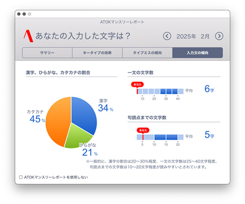 「ATOK マンスリーレポート」の「2025年02月分」でございます。
