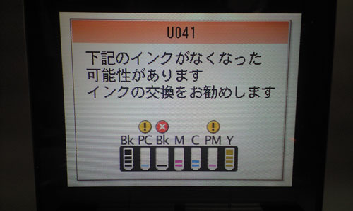 他に、「マゼンタ(M)」と「フォトシアン(PC)」の残量が少ない。