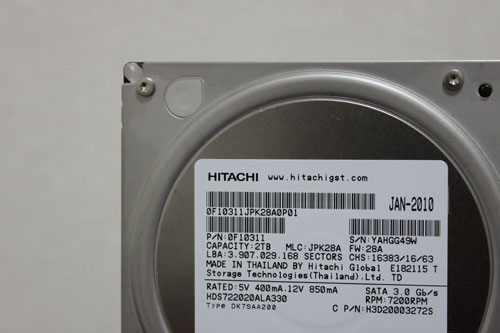ハードディスクは、「Western Digital」の「2TB」、「WD20EARS」を購入しました。