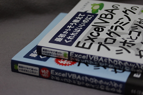 「最初からそう教えてくれればいいのに! Excel VBA のプログラミングのツボとコツがゼッタイにわかる本」と「最初からそう教えてくれればいいのに! 続 Excel VBA のプログラミングのツボとコツがゼッタイにわかる本」の2冊です。