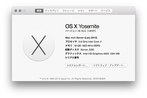 「バージョン 10.10.4(14E46)」から「バージョン 10.10.5(14F27)」になりました。