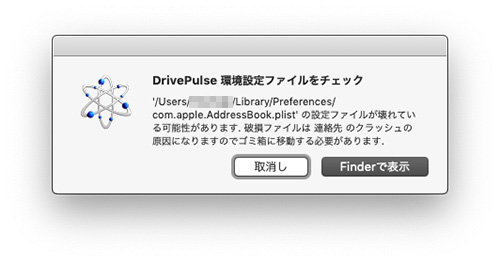 削除して良いファイルか、わかりませんが、「破損している可能性がある」そうなので、削除してしまいました。