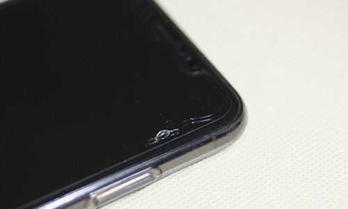 朝起きて「iPhone XS Max」を見たらトコロ、この前、貼り替えたばかりの「液晶保護ガラス」が、また割れておりました。