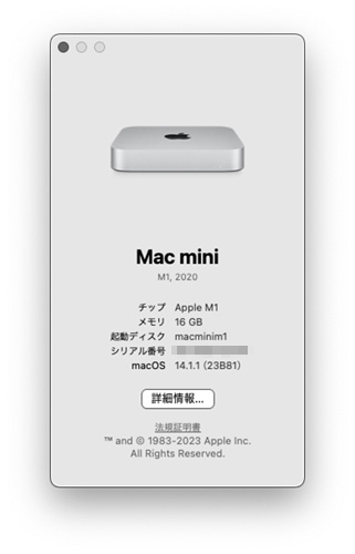 「Mac mini, M1 2018」の「macOS 14 Sonoma」をアップデートしました。
